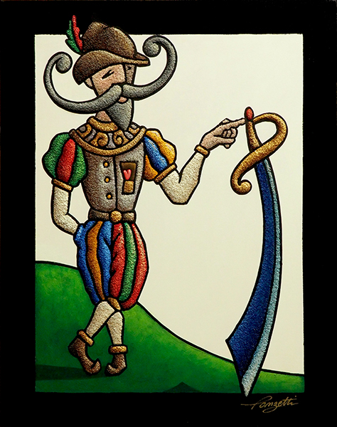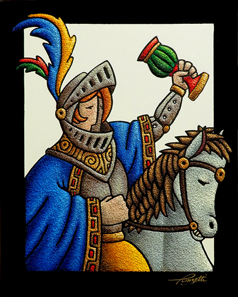 Sono parole che si ascrivono appieno all’arte di Francesco Ponzetti che si eleva con ideazioni immaginifiche dal magma del vissuto e dalla marea impetuosa che solca di emozioni il nostro vivere. Nelle sue opere vi è inscritta, con arte sublime di gesto e sabbia, l’impronta tridimensionale e coloristica del prima, ma anche del non ancora, riflessione e quindi profezia. Luoghi chimerici ed onirici racchiudono il segreto surrealistico del magico, che si svela nel dipanarsi dell’esistente intessendosi di tasselli del divenire. Un viaggio ermeneutico, percorso dialogico continuo tra l’artista che crea ed il riguardante.