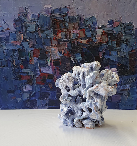 Il linguaggio di Asmone è internazionale. Merita scenari ampi e sempre maggiori. Basta conoscere la via che attraversa ogni volta che si lancia nel dipingere e nello scolpire. Una strada accidentata, in cui deve stare attento a tutto, pur lasciando che la mano vada a creare curve di materia, sovrapposizioni dense di colore ad olio, smalti abbondanti sulla terracotta.