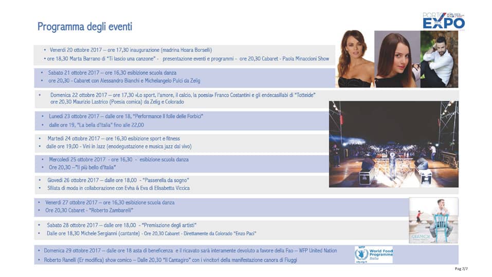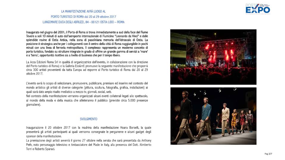 Da venerdì 20 a domenica 29 ottobre 2017, presso il Porto Turistico di Roma (Ostia) si svolgerà la prima edizione del Festival delle Arti “Porto Expò”