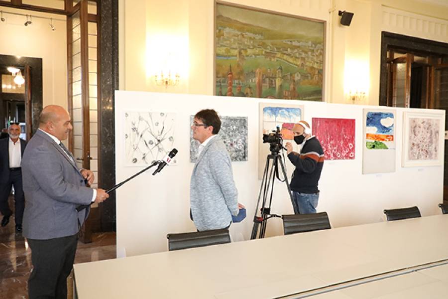 Assonanze, vicinanze e contrasti, perché no, per due anime artistiche differenti per generazione e obiettivi. Ma è proprio questo che ha affascinato i tanti presenti alla “prima” e il nutrito gruppo di visitatori. L’ambientazione, in Palazzo Santo Stefano, è sontuosa. Un luogo stracarico di vicende storiche, che comprende anche un museo ed un rifugio antiaereo, oltre che, a solo titolo di esempio, il lavoro dell’Ingegnere Marco Zaccaria e dell’Architetto Angelo Pisani, che dal 1934 al 1937 realizzarono il magnifico ingresso con le ordinatissime e luminose scalinate, tutto con materiali italiani. E nel giorno della inaugurazione, a chi ha lavorato intensamente per questa mostra, il palazzo sembrava ancor più luccicante della sua semplice e fascinosa bellezza, arricchita dai dipinti di due artisti che hanno fatto risuonare l’eco di quel “Gli artisti italiani sono i migliori…” che da qualche parte qualcuno dimentica.