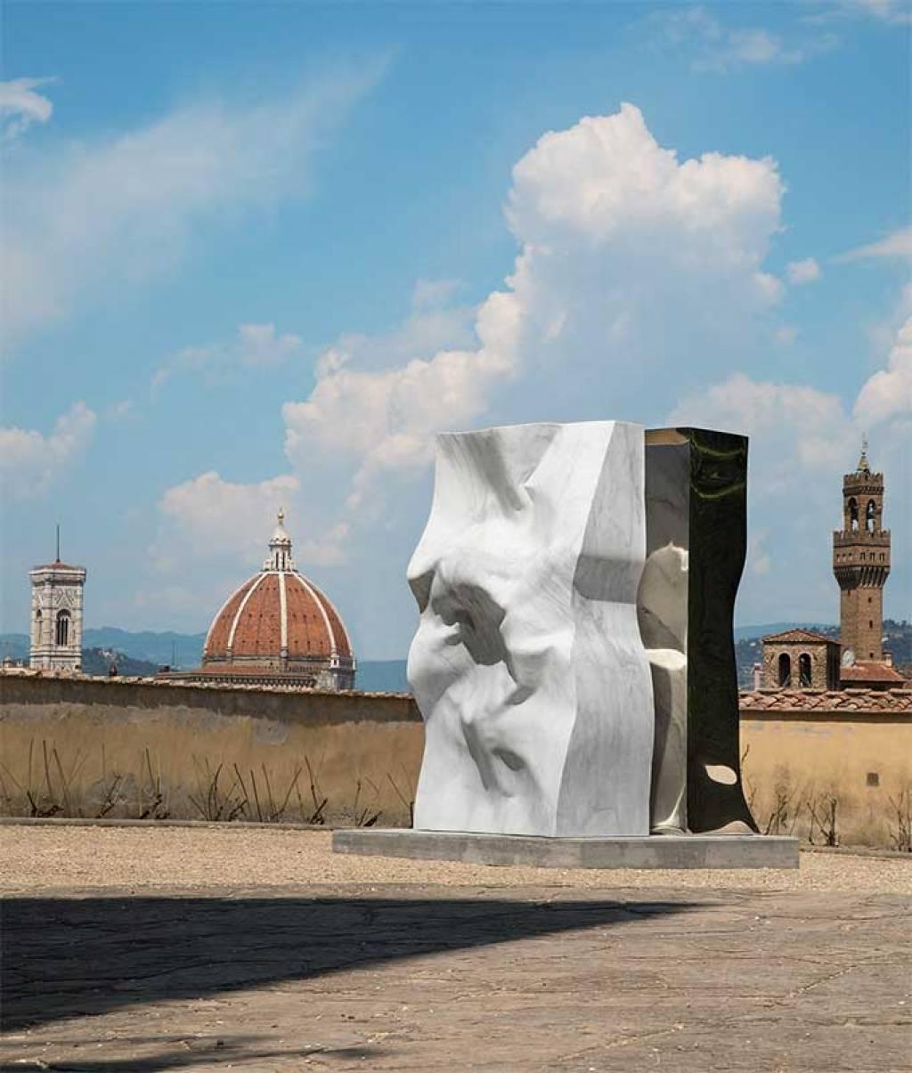 «Le grandi dimensioni delle mie opere per la mostra ai Boboli sono state imposte dalla maestosità stessa di questo sublime giardino. La superficie riflettente dell’acciaio, invece, mi ha dato modo di riflettere e amplificare certi aspetti del Giardino di Boboli. In un certo senso le mie sculture operano come un portale che apre su una quarta dimensione, quella della fantasia. Attraverso le mie opere i visitatori sono in grado di osservare l’ambiente circostante in maniera totalmente diversa e filtrare questa realtà alternativa attraverso la propria immaginazione».